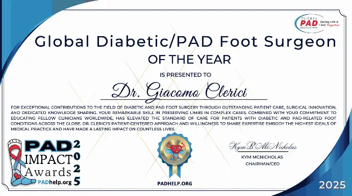 Nuovo Premio alla Carriera conferito al dr. Giacomo Clerici dalla prestigiosa associazione americana Global PAD Association, nel mese di settembre2025.